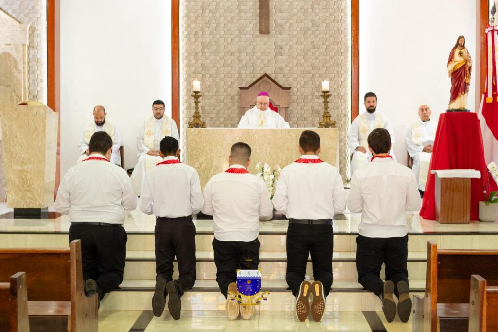 Consagraram-se André, Augusto, Caio e Rubens (Diocese de Dourados) e Wanderson (Diocese de Corumbá). A consagração ao Sagrado Coração é um gesto ligado ao Apostolado da Oração e expressa o compromisso de oferecer a vida a Deus por meio da oração e do sacrifício, unindo-se espiritualmente a Cristo e colocando nele todas as intenções da vida e da vocação.